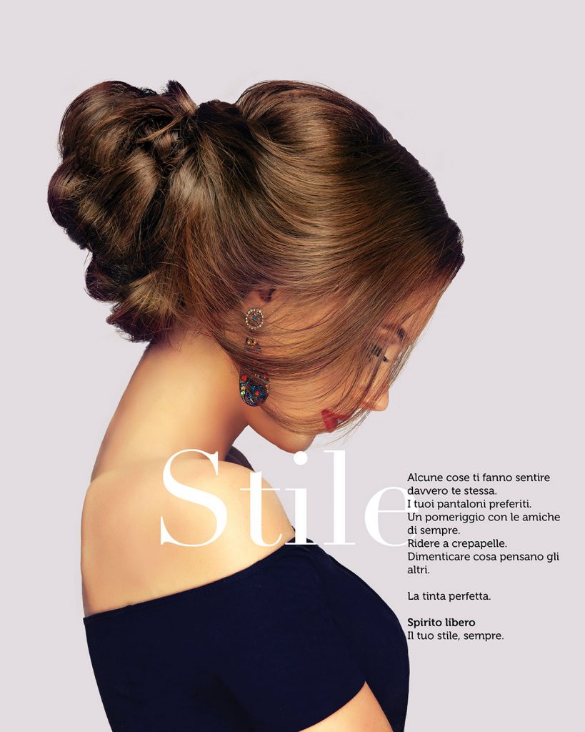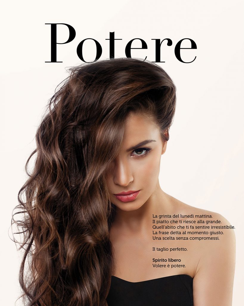Le varie adv, caratterizzate da una linea grafica coordinata, sono state accompagnate da un copy  che punta a descrivere le sensazioni e le emozioni della vita quotidiana delle clienti ideali del salone: donne volitive, coraggiose, determinate, irriverenti, caparbie, libere.